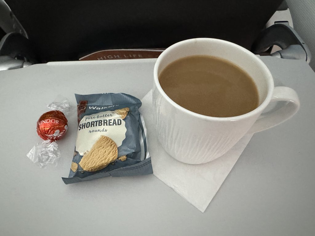 I ordered a coffee after breakfast, and the flight attendant gave me a Lindor chocolate and shortbread to enjoy with it.