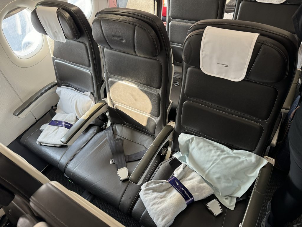 Like I said earlier, I wasn’t thrilled that this was a Club Europe flight, mainly due to the cabin and seats. British Airways uses standard economy seats for their Club Europe flights, and the only difference between business class and economy is that the middle seat is blocked in business class. While the seat wasn’t comfortable, I got lucky and had the entire row to myself.