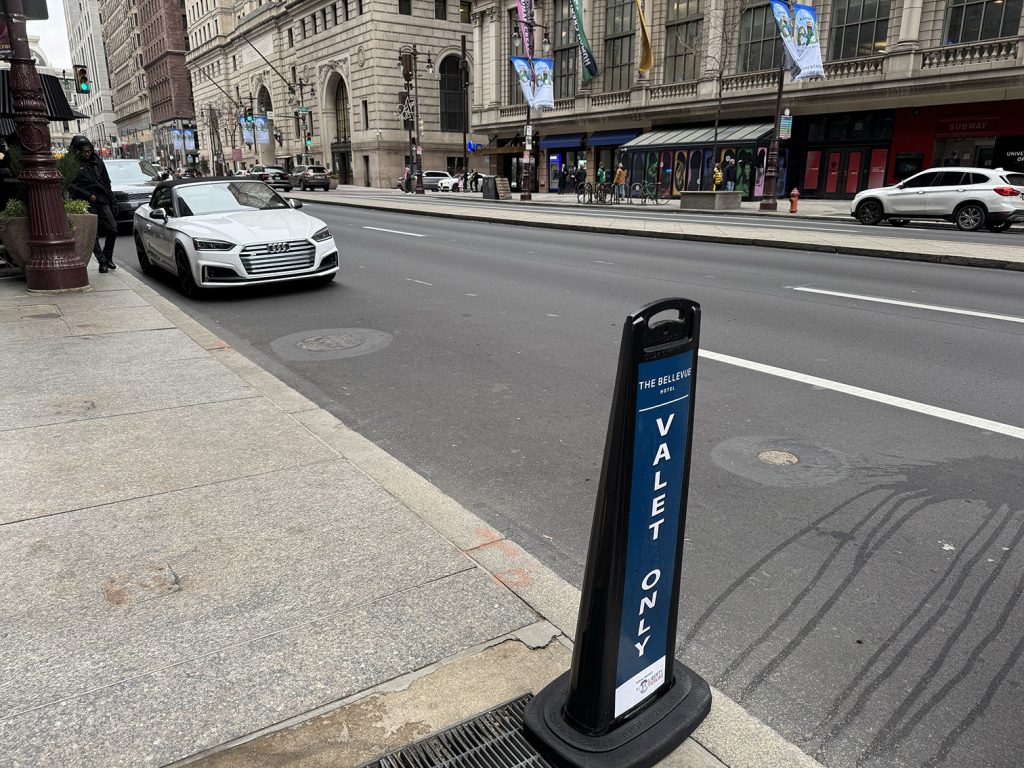 The Bellevue Hotel only offers valet parking for a hefty $72 fee per night.