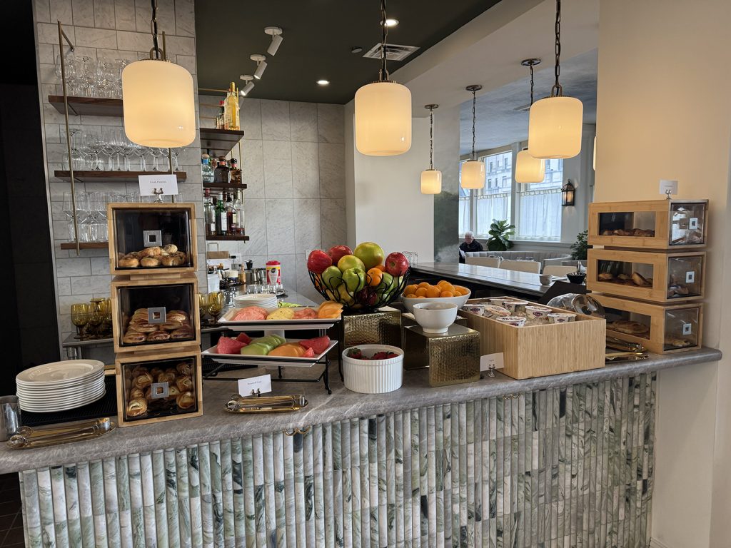 Breakfast is served at Pergola, the hotel’s only restaurant. It is located on the 19th floor. Breakfast is served daily from 6:30am to 11:00am. There are two options for breakfast: continental for $25 or the full spread for $42. Both are buffet-style and come with your choice of tea, coffee, and juice.