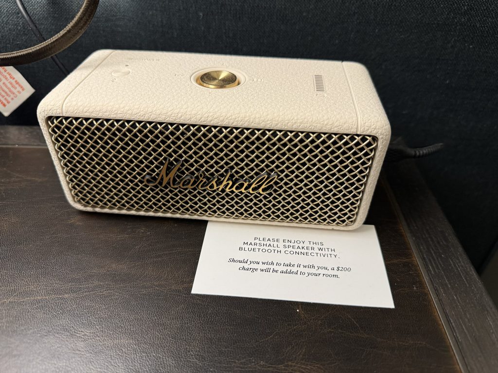 Each room has a Marshall Emberton II Bluetooth speaker, which you can take for $200.